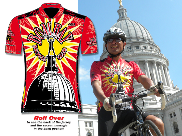 Jersey for Bombay Bicycle Club in Madison Wisconsin. To see the back, roll over the image or click here.
