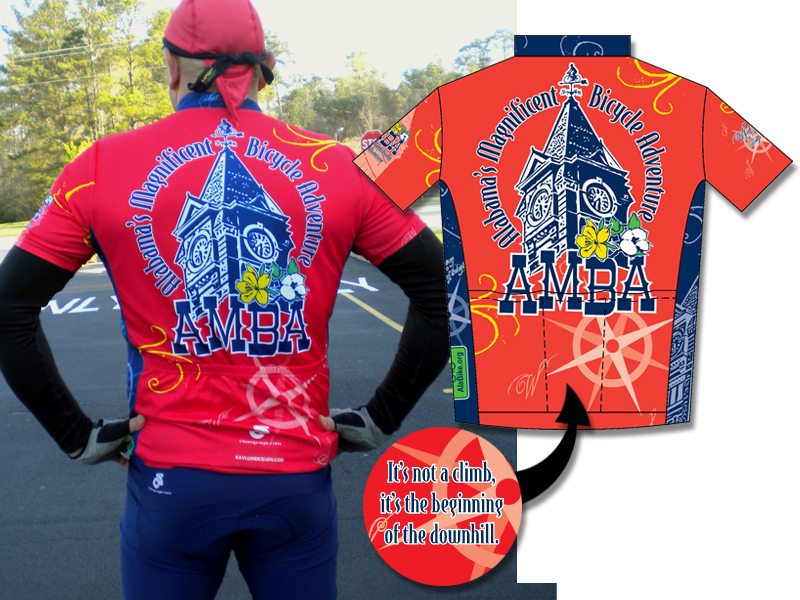Back view of AMBA jersey. "Secret message" art in circle is hidden inside back pocket.