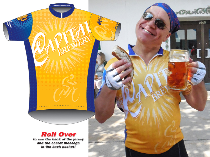 Jersey design for the 2014 Capital Brewery Bike Club in Middleton, WI to see the back of the jersey, either roll over or click here!