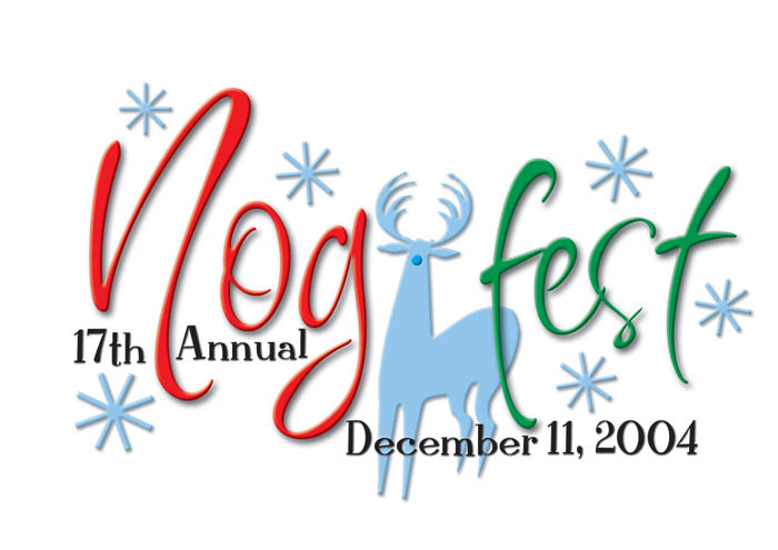 Logo for an annual Christmas costume party featuring Egg Nog. The logo changed every year.