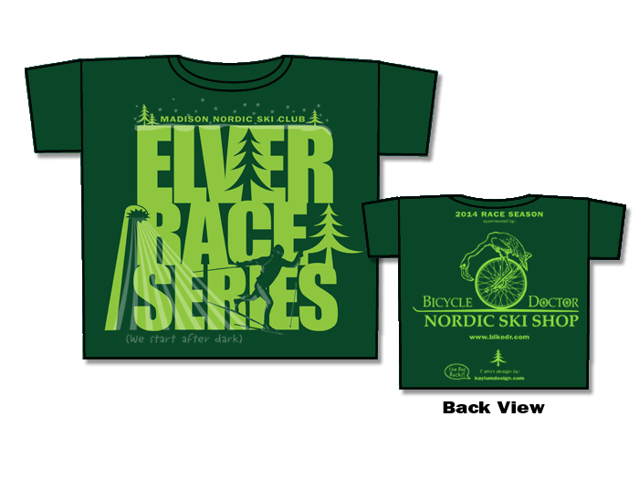 T Shirt design for the Elver night time race series in Madison WI. this has a glow ink