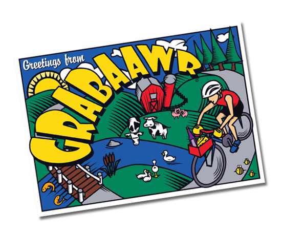 Postcard Illustration and design for A weeklong bicycle ride in Wisconsin. This coordinates with this T shirt. To see the other side of the postcard, click here.